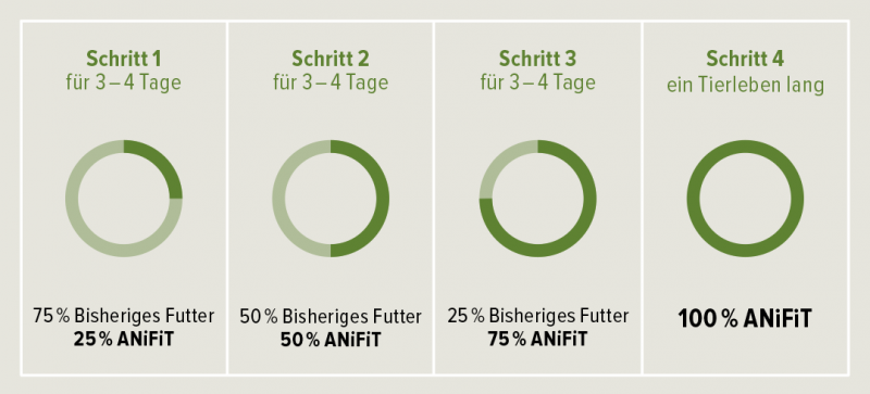 • Schritt 4 (ein Tierleben lang): 100 % ANiFiT-Futter