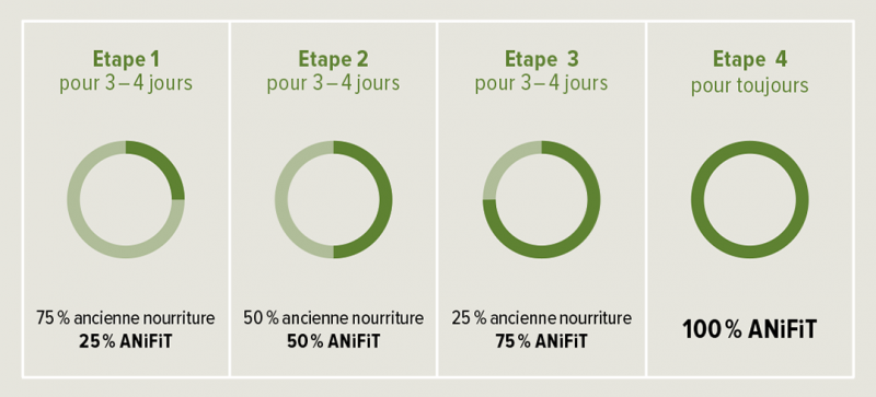 75% de l'alimentation précédente, 25% d'ANiFiT.