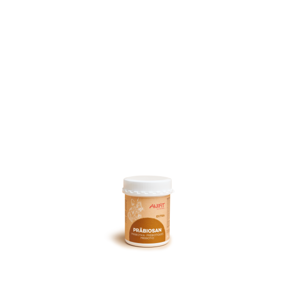 ANiFiT Präbiosan est un complément alimentaire de haute qualité pour le traitement des troubles intestinaux chez le chien et le chatqui s’occupe de régénérer et rééquilibrer la flore intestinale grâce à des agents prébiotiques actifs et à des éléments nutritifs qui soutiennent sélectivement la flore saprophyte (cellules vivantes).